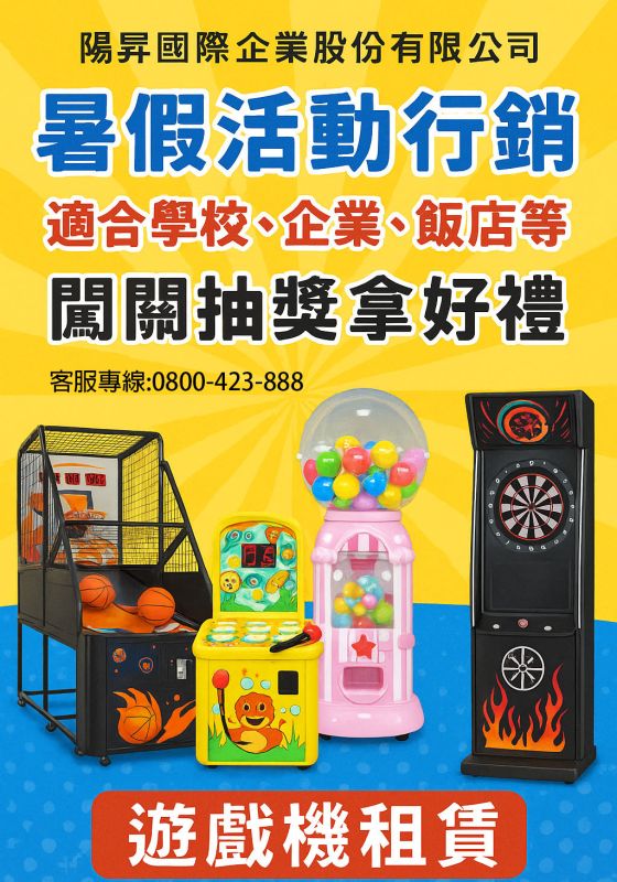 暑假不只是放假更是瘋狂遊戲的好時機大型遊戲機租賃遊戲機買賣遊戲機陽昇國際 mimico0604 2025 年 7 月 23 日 促銷活動 !暑假不只是放假,更是瘋狂遊戲的好時機! 不可錯過的絕佳行銷時機,洽詢遊戲機的行家 陽昇國際 優質親切的服務 使命必達 #遊戲機租賃 #大型扭蛋機 #客製化娃娃機 #活動展覽企劃 #活動設備出租公司 #育樂設備買賣 #活動道具租借 #遊戲設備出租 歡迎來電洽詢, 專人為您服務 免費客服專線: 0800-423-888 公司電話: 02-2682-3888 分享此文:分享到 Twitter(在新視窗中開啟)按一下以分享至 Facebook(在新視窗中開啟)分享到 Tumblr(在新視窗中開啟)分享到 WhatsApp(在新視窗中開啟)按一下即可分享至 Skype(在新視窗中開啟)點這裡寄給朋友(在新視窗中開啟) You Might Also Like 兒童對戰遊戲機貪吃蛇小精靈復古遊戲機兒童遊戲機遊樂場親子遊樂場遊戲機租賃買賣陽昇國際 2025 年 3 月 13 日 夜市彈珠台復古彈珠檯打彈珠台夜市擺攤青年創業輕鬆回本 陽昇國際 2022 年 9 月 23 日 2024新機來襲!!!電子式扭蛋機喵喵扭蛋機雙層扭蛋機造型扭蛋機無人商店扭蛋機新品陽昇國際 2024 年 5 月 31 日